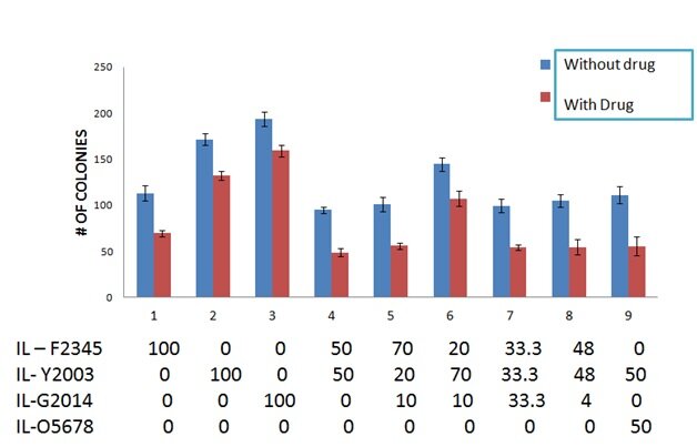 Displayed below are several energy converter combinations, tested against multiple X ray conditions, showing consistent reduction in cell survival as compared to controls (no drug).